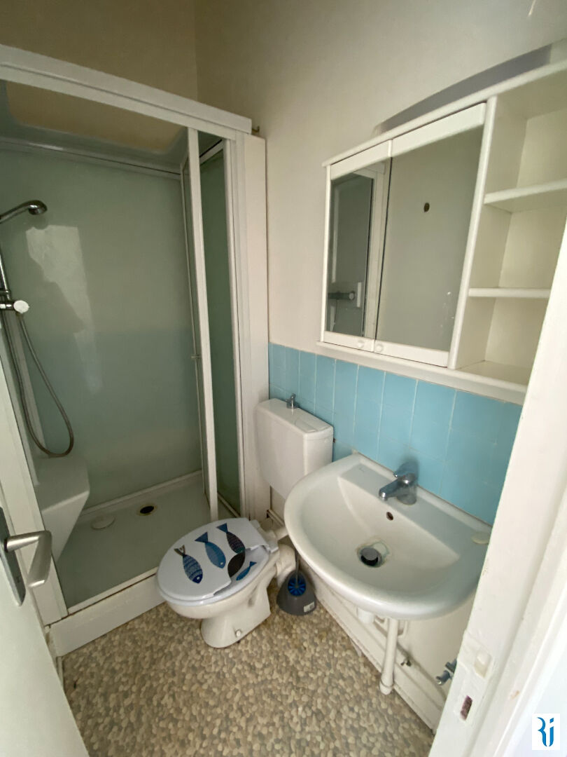 ROUEN secteur résidentiel proche gare, dans ancien Hôtel particulier, agréable STUDIO 18.77 m2 avec balcon exposé OUEST, comprenant: pièce principale avec coin cuisine, salle de douche avec WC.